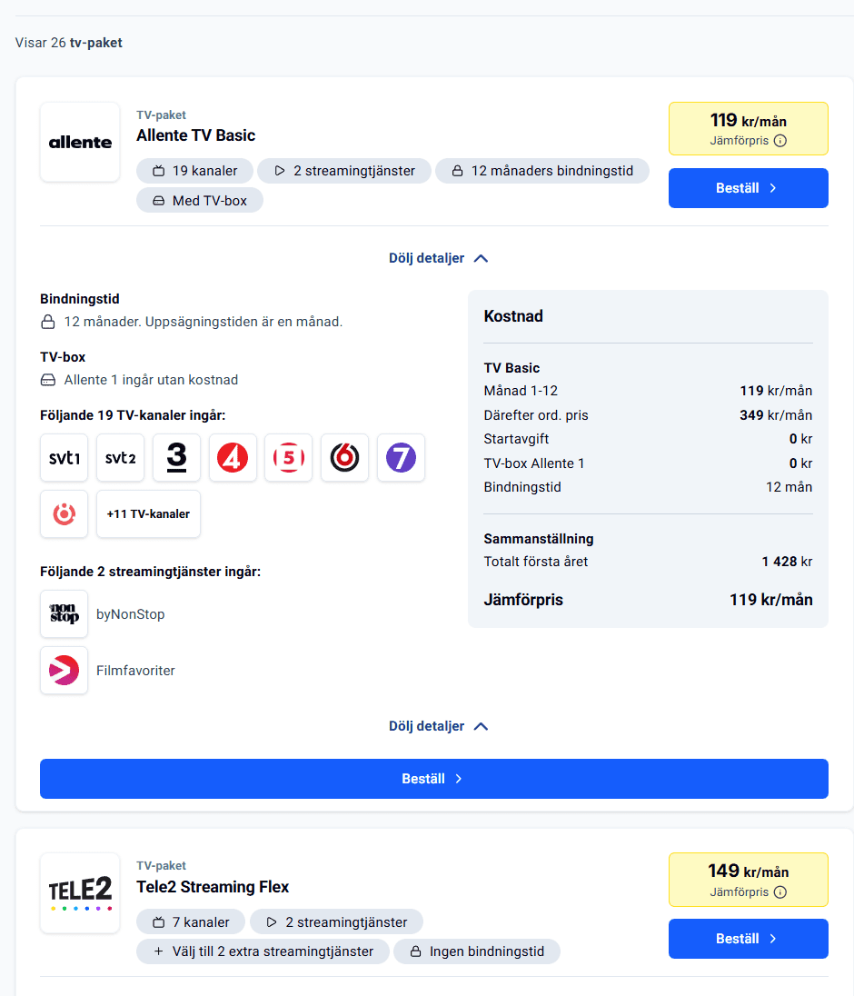 - Analysera årskostnaden: Istället för att bara se lockpriser vid tecknande, beräknar verktyget den totala kostnaden över ett helt år, inklusive eventuella prishöjningar efter kampanjperioder.