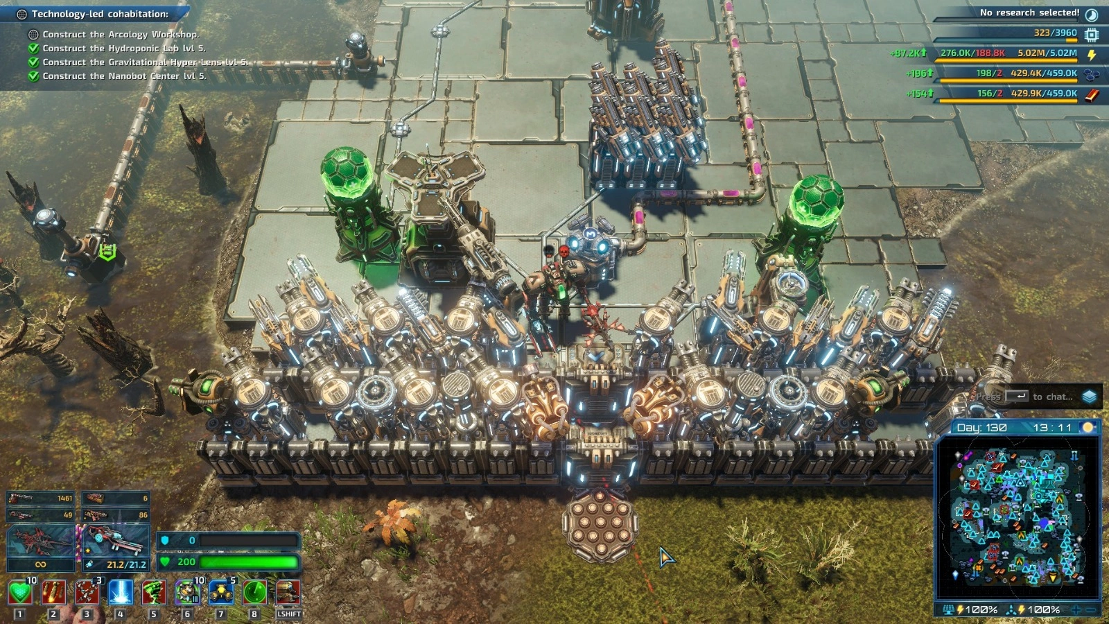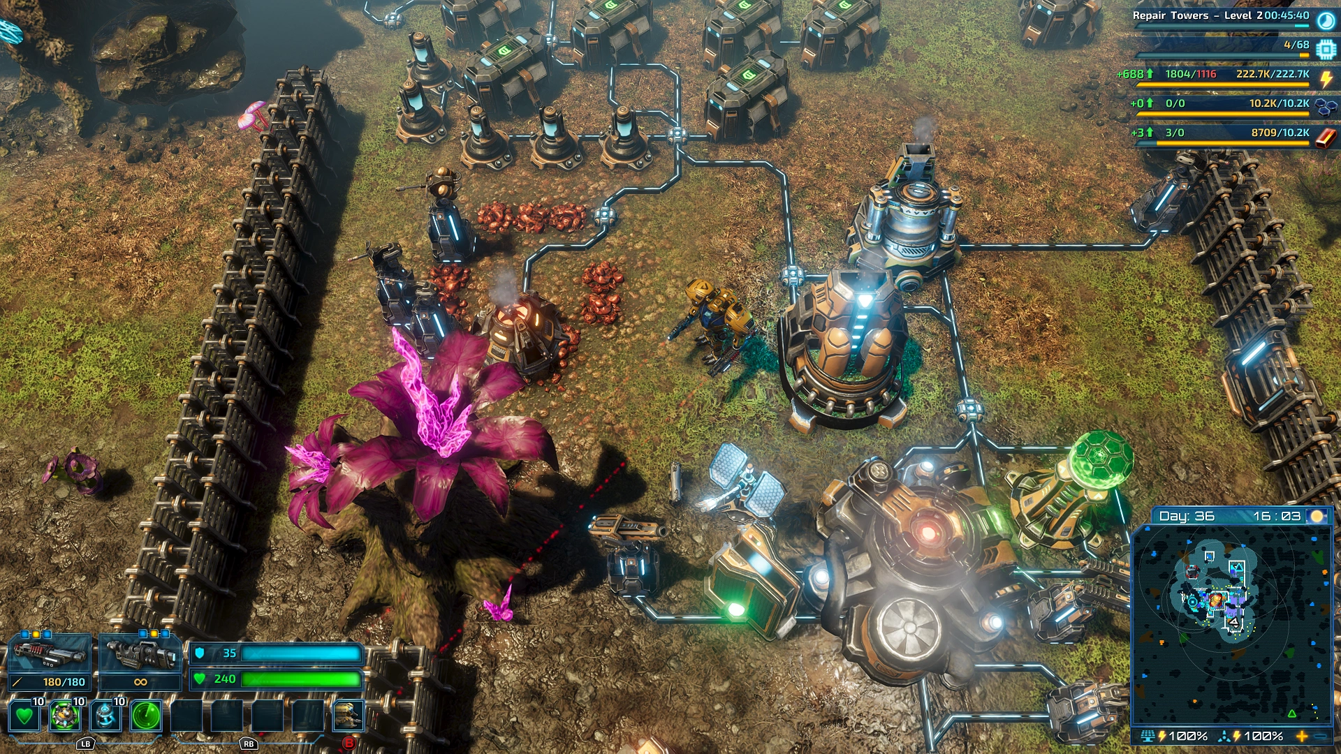 Spelaren behöver sällan oroa sig för raffinering av råmaterial eller komplicerad ammunitionsförbrukning. Möjligheten att teleportera mellan portaler och få tillgång till arsenalen från valfri plats gör att fokus ligger på expansion snarare än finjustering. Strategin är ofta kvantitativ; ju fler byggnader du kan placera ut, desto bättre blir ditt resultat.