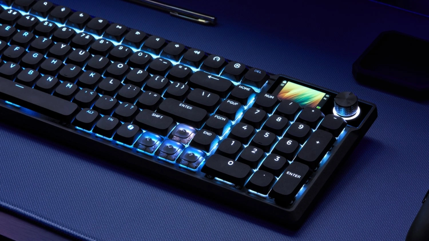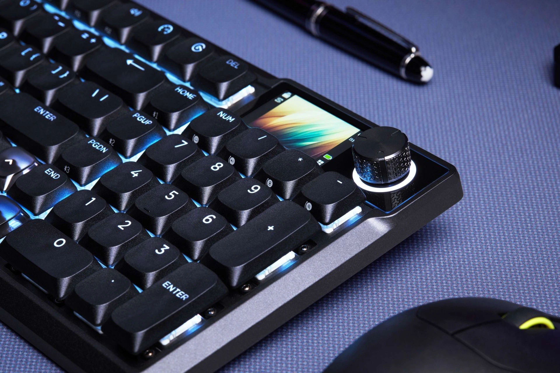 Den mest iögonfallande nyheten är den lilla LCD-skärmen placerad i tangentbordets övre del. Där Corsair tidigare imponerat med integrerade Stream Deck-funktioner i sina större modeller, lämnar skärmen på Vanguard Air 99 en del att önska.