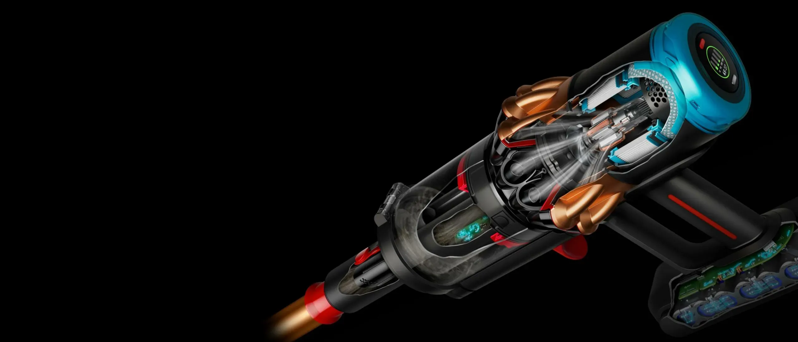 Under huven hittar vi den nya Hyperdymium-motorn på 900 watt, vilken genererar en imponerande sugeffekt på 315 airwatts (AW). I praktiken innebär detta att Dyson V16 Piston är den mest kraftfulla stickdammsugaren tillverkaren hittills producerat.